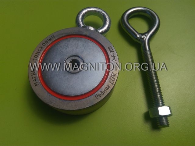*поисковые магниты производства НПП "Редмаг", г. Калуга. Комплектация: 1. Магнит поисковый 2*F200. 2. Два рым болта . 3. Контргайка на сквозной рым-болт, что бы не раскручивался. 4. Шпилька для поискового магнита М10 под отвертку для центрального отверстия. 5. Инструкция. 6. Защитная упаковка. Презентация магнита на канале для рыболовов любителей, где магнит на 2х200кг позиционируется как магнит для рыболовов "когда не клюет":