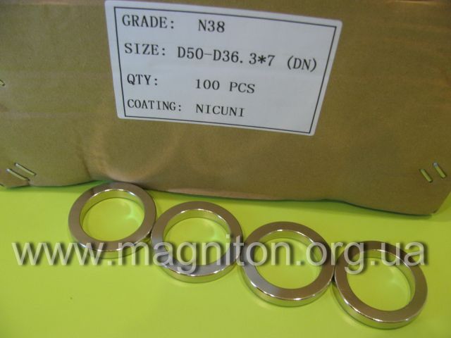 Магнит кольцо 50-36,3х7 мм -DNВи можете збільшити зображеннямагніту, натиснув на нього Категорія: С диаметральной намагниченностью Неодимовый магнит 50-36,3х7 мм в форме кольца с намагниченностью по диаметру купить в Украина. N38. NdFeB. Купить магнит с намагниченностью с боку.