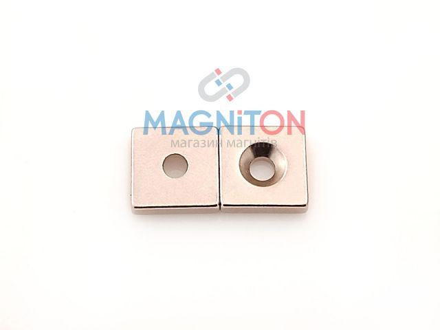 Магнит крепежный 12x12x3-1d3,5/6 мм -- NВи можете збільшити зображеннямагніту, натиснув на нього Категорія: Магниты неодимовые крепежные без корпуса Магнит прямоугольный крепежный 12х12х3 мм с отверстием под 1 винт или шуруп, сила 3 кг. Вес: 2,95 г. Покрытие -никель. Полярность N.