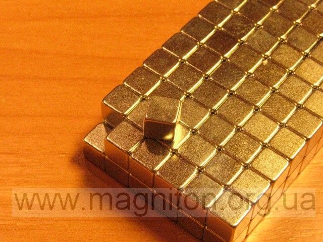 Неодимовый магнит призма или магнит кубик имеет одинаковые размеры по длине, ширине и высоте, магнитные кубики могут применяются для моделирования, конструирования, проведения экспериментов. Из 216 шт таких кубиков можно собрать ТЕТРАКУБ 6мм, сложив их в куб 6х6х6 шт. О свойствах неодимовых магнитов больше информации можно получить в статье "Виды магнитов", "Неодимовые магниты" а об их применении расскажет статья "Применение магнитов".