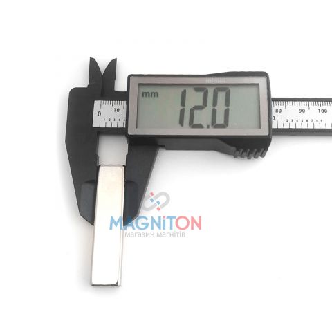 Магнит неодимовый 50х12х5 ммВи можете збільшити зображеннямагніту, натиснув на нього Категорія: Магниты прямоугольные Прямоугольный магнит 50х12х5мм. Усилие на отрыв 10 кг. NdFeB. N38.