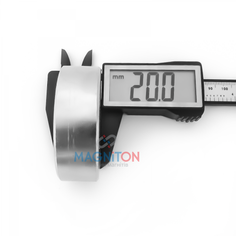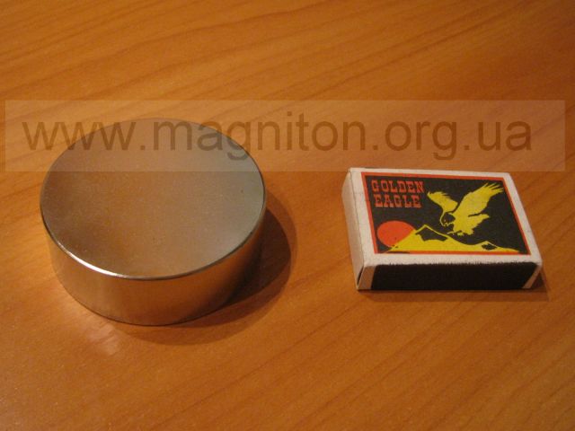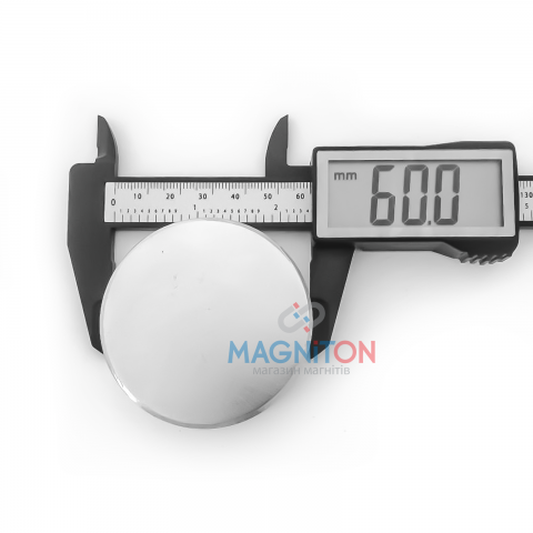Магнит из сплава Неодим-Железо-Бор. Диаметр = 60мм, высота = 20мм. Намагниченность N38. Основные характеристики: