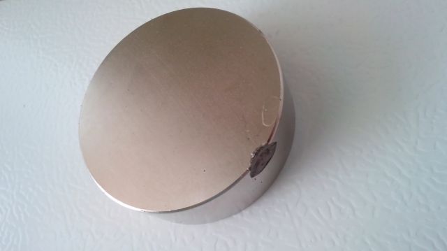 На магните 50мм в диаметре и 20мм высотой присутствует скол поверхности не влияющий на магнитные свойства самого магнита. Основные характеристики: