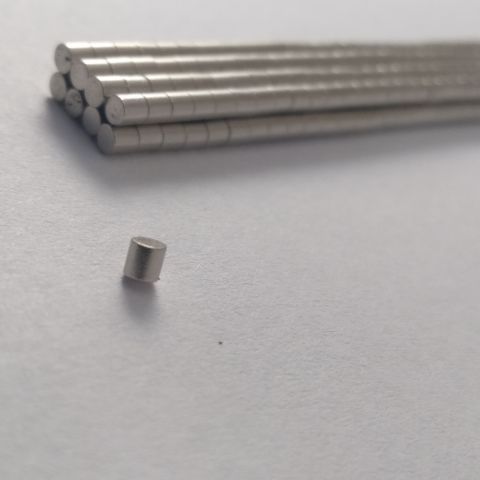 Маленький магнітик з рівними розмірами діаметра та висоти 2х2 мм з неодиму.