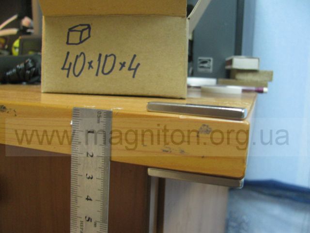 Магнит пластина неодимовая 40х10х4 ммВи можете збільшити зображеннямагніту, натиснув на нього Категорія: Магниты прямоугольные Прямоугольный магнит 40 х 10 х 4 мм. Сила около 7,8 кг. Материал NdFeB. Класс N38.