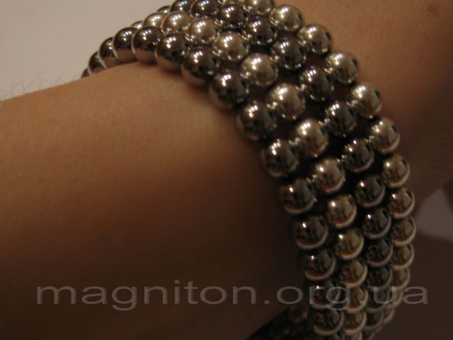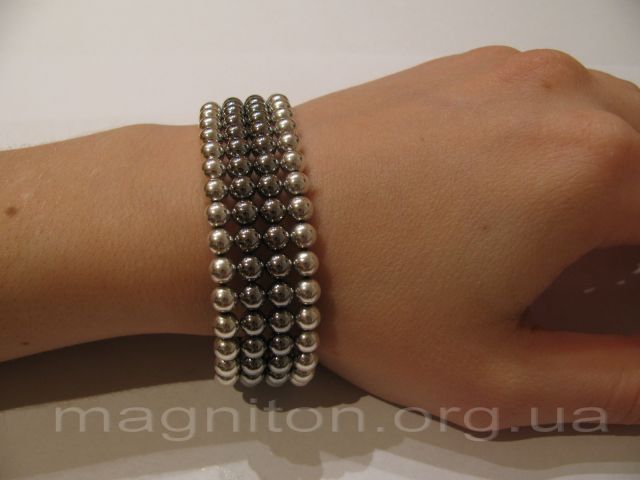 Магнитный браслет Б18 мужскойВи можете збільшити зображеннямагніту, натиснув на нього Категорія: Магнитные браслеты Браслет магнитный состоит из 176 магнитных никелированных шариков, 88 шариков цвета "серебро" и 88 шариков цвета "хром" диаметром 5 мм Магнитный браслет, рассчитанный на обхват запястья 21 см (средний обьем мужской руки). Элементы браслета - четыре ряда неодимовых магнитных шариков, по 88 шариков цвета "серебро" и 88 шариков цвета "хром" диаметром 5 мм. Наличие шариков двух цветов в браслете позволяет самостоятельно создавать различные варианты одного изделия. Вы можете носить его в виде браслета из четырех, трех, двух, одного рядов, подбирая сочетание цветов на свой вкус.