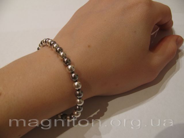 Магнитный браслет Б5 женскийВи можете збільшити зображеннямагніту, натиснув на нього Категорія: Магнитные браслеты Браслет состоит из 38 магнитных никелированных шариков двух цветов, по 19 цветов "серебро" и "хром" диаметром 5 мм Магнитный браслет, рассчитанный на обхват запястья 18 см (на женскую руку). Элементы браслета - по 19 неодимовых никелированных шариков цветов "серебро" и "хром", диаметром 5 мм. Простота магнитного соединения элементов в браслете позволяет легко менять его размер.