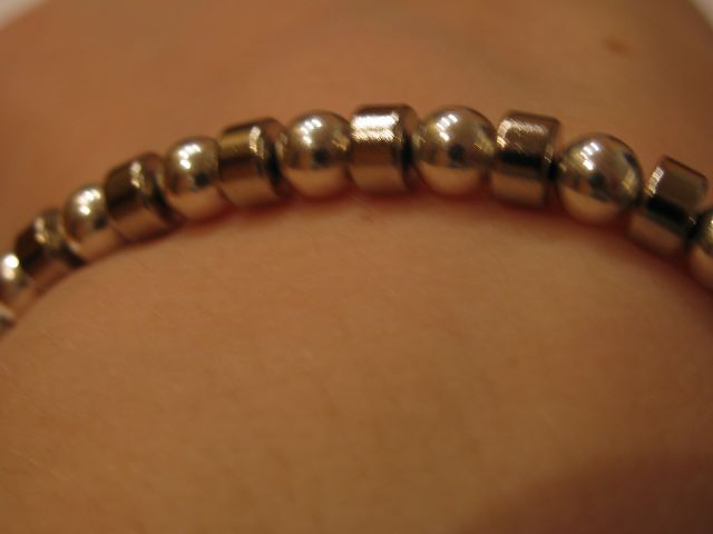 Магнитный браслет Б7 женскийВи можете збільшити зображеннямагніту, натиснув на нього Категорія: Магнитные браслеты Браслет состоит из 24 магнитных никелированных шариков диаметром 5 мм и 24 магнитных никелированных цилиндров диаметром 5 мм и высотой 3 мм Магнитный браслет, рассчитанный на обхват запястья 18 см (средний обхват женской руки). Элементы браслета - 24 неодимовых никелированных шариков, диаметром 5 мм и 24 магнитных никелированных цилиндров диаметром 5 мм и высотой 3 мм. Простота магнитного соединения элементов в браслете позволяет легко менять его размер.