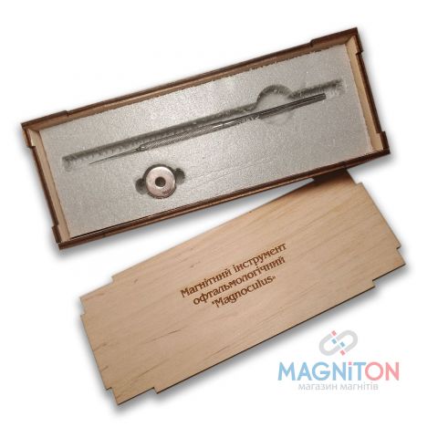Екстрактор магнітний офтальмологічний Магнокулус складається з металевої палички (спецсталь) зі змінним діаметром у бік зменшення. Також у набір входить магніт неодимове кільце 20-6*20 мм підвищеної намагніченності N42.