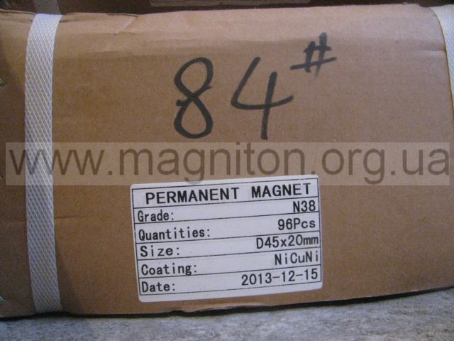 Неодимовый магнит диск 45х20 ммВи можете збільшити зображеннямагніту, натиснув на нього Категорія: Магниты диски Неодимовый супермагнит - шайба 45*20 мм. Диаметр 45 мм, высота 20 мм. Сила магнита около 50-70 кг. Магнит сплав NdFeB. Намагниченность N38. Вес:237 г. Основные характеристики: