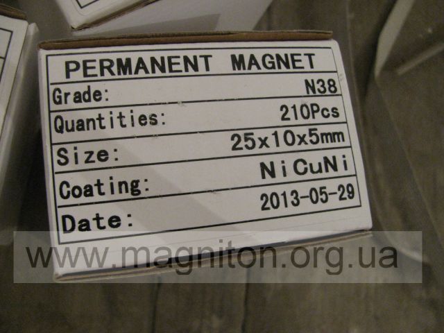 Пластина магнит неодимовая 25х10х5 ммВи можете збільшити зображеннямагніту, натиснув на нього Категорія: Магниты прямоугольные Магнит прямоугольник 25х10х5 мм, сплав NdFeB.Намагниченность N38. Усилие на отрыв 6,2 кг.
