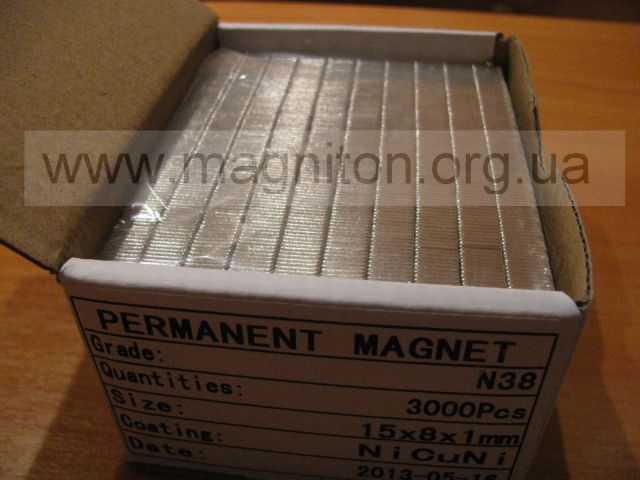 Пластина неодимовая 15х8х1 ммВи можете збільшити зображеннямагніту, натиснув на нього Категорія: Магниты прямоугольные Материал: NdFeB. N38. Размер: 15х8х1мм. Сила сцепления: 0,8 кг.