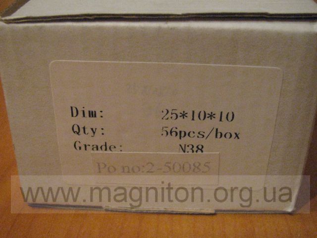 Пластина неодимовая 25х10х10 ммВи можете збільшити зображеннямагніту, натиснув на нього Категорія: Магниты прямоугольные Прямоугольник магнит 25*10*10 мм. Усилие на отрыв 12 кг. NdFeB.N38.