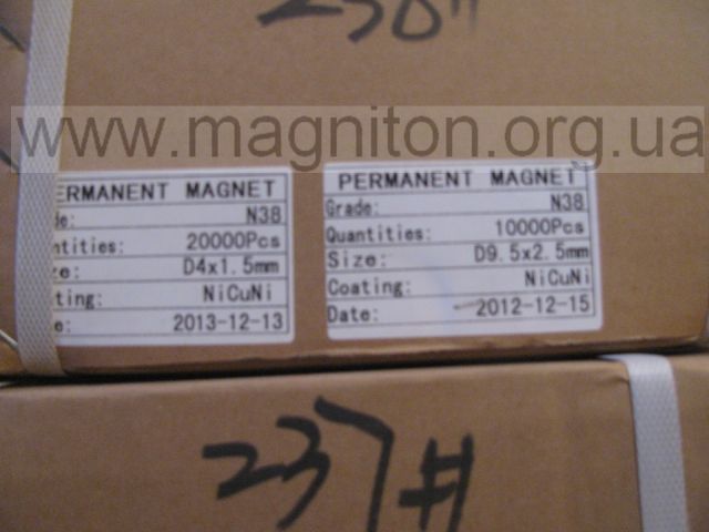 Постоянный магнит. Диск 9,5х2,5 ммВи можете збільшити зображеннямагніту, натиснув на нього Категорія: Магниты диски Сплав магніту NdFeB. Намагніченість N38. Розміри: D = 9,5 мм, h = 2,5. Сила 1,2 кг. Основні характеристики: