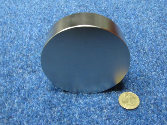 Постоянный неодимовый магнит. Диск 100х30 мм N38Ви можете збільшити зображеннямагніту, натиснув на нього Категорія: Магниты диски NdFeB.N38.Большой неодимовый магнит D=100мм, H=30мм.Силой в 350 кг, покрытие никель. Соблюдайте осторожность при использовании магнитов!!! Этот магнит невозможно оторвать от металлической поверхности силой рук одного человека. Очень большой и сильный постоянный магнит с большим и мощным постоянным магнитным полем.