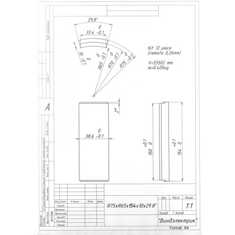 Сегмент R75xr65x29,8°x150(154). Набор 12 шт (S+N)Ви можете збільшити зображеннямагніту, натиснув на нього Категорія: Магнит сегмент, магнит сектор Неодимовый магнит сегмент R75xr65x29,8°x150(154). Набор из 12 шт (6шт-S+6шт-N). Набор неодимовых магнитов сегментов размером R75xr65x29,8°x150(154)х10 мм - N38SH по 6 шт разной полярности (6 шт - S и 6 шт - N), всего 12 шт .